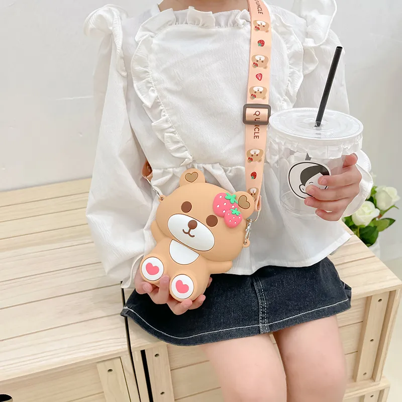 Crossbody bag for Kids Cartoon Strawberry Bear Design