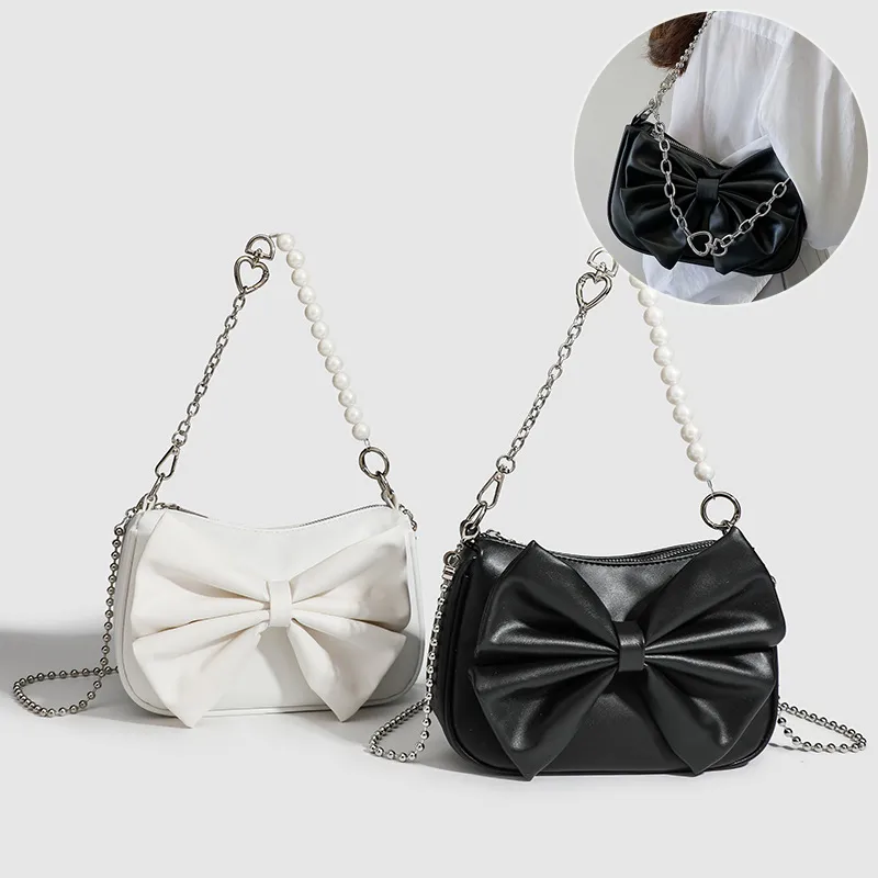 Handbag Black White PU Bow Small Fashion Bag Purse